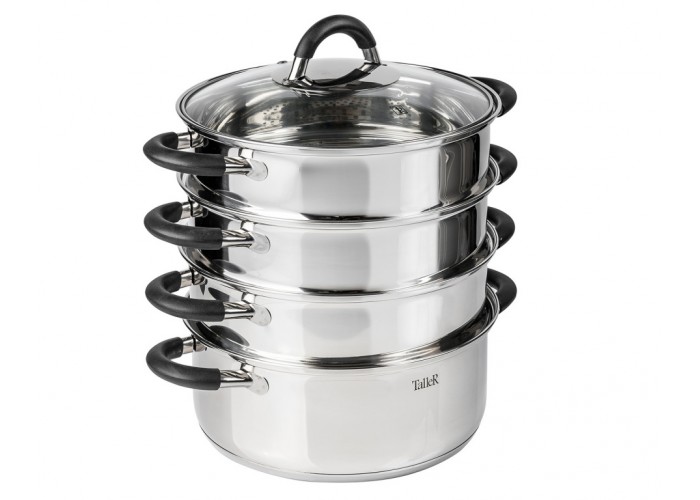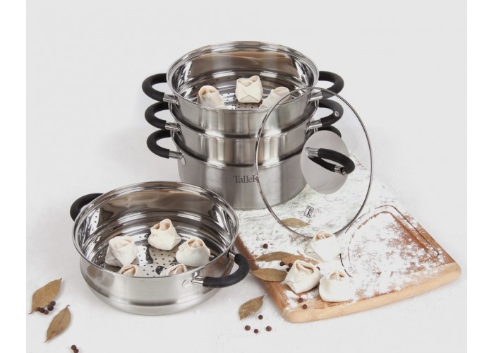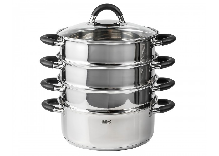 Состав: кастрюля с крышкой 24*10 см (4,1 л), три уровня 24*8,7 см