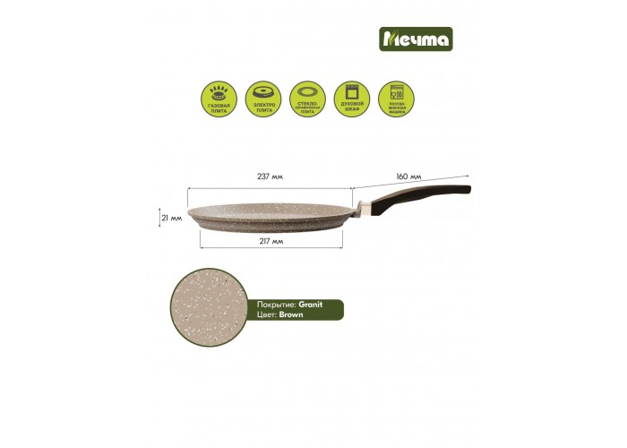 Сковорода блинница гранит из литого высококачественного пищевого алюминия «Мечта» станет незаменимым инструментом и надежным помощником на вашей кухне.