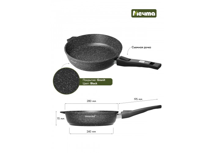 Сковорода индукционная "Мечта" с антипригарным покрытием, серия Гранит black Induction Pro, со съемной ручкой, 28см
