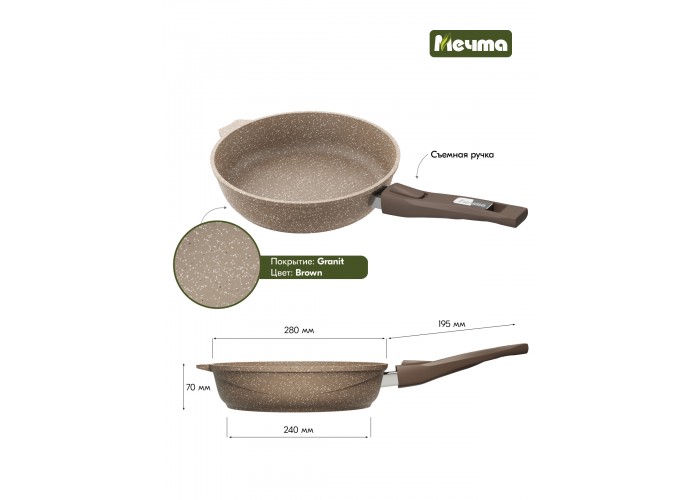 Сковорода "Мечта" со съемной ручкой, серия Гранит Brown, 28 см